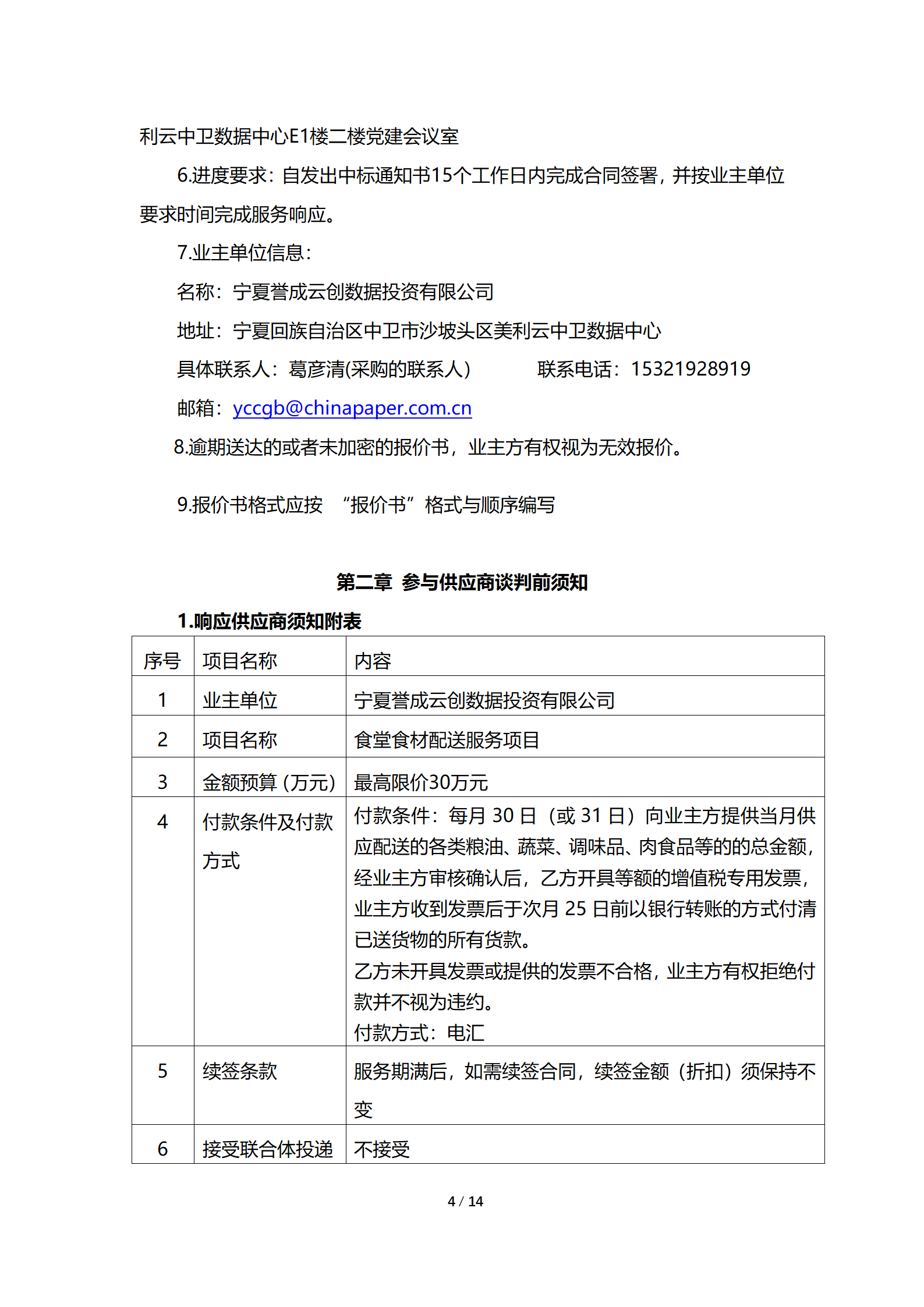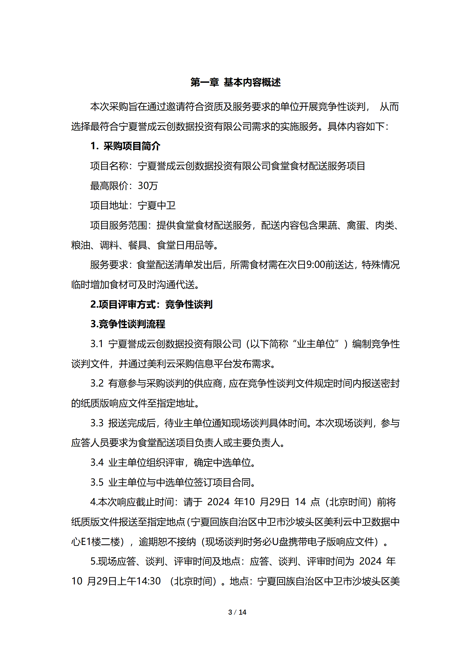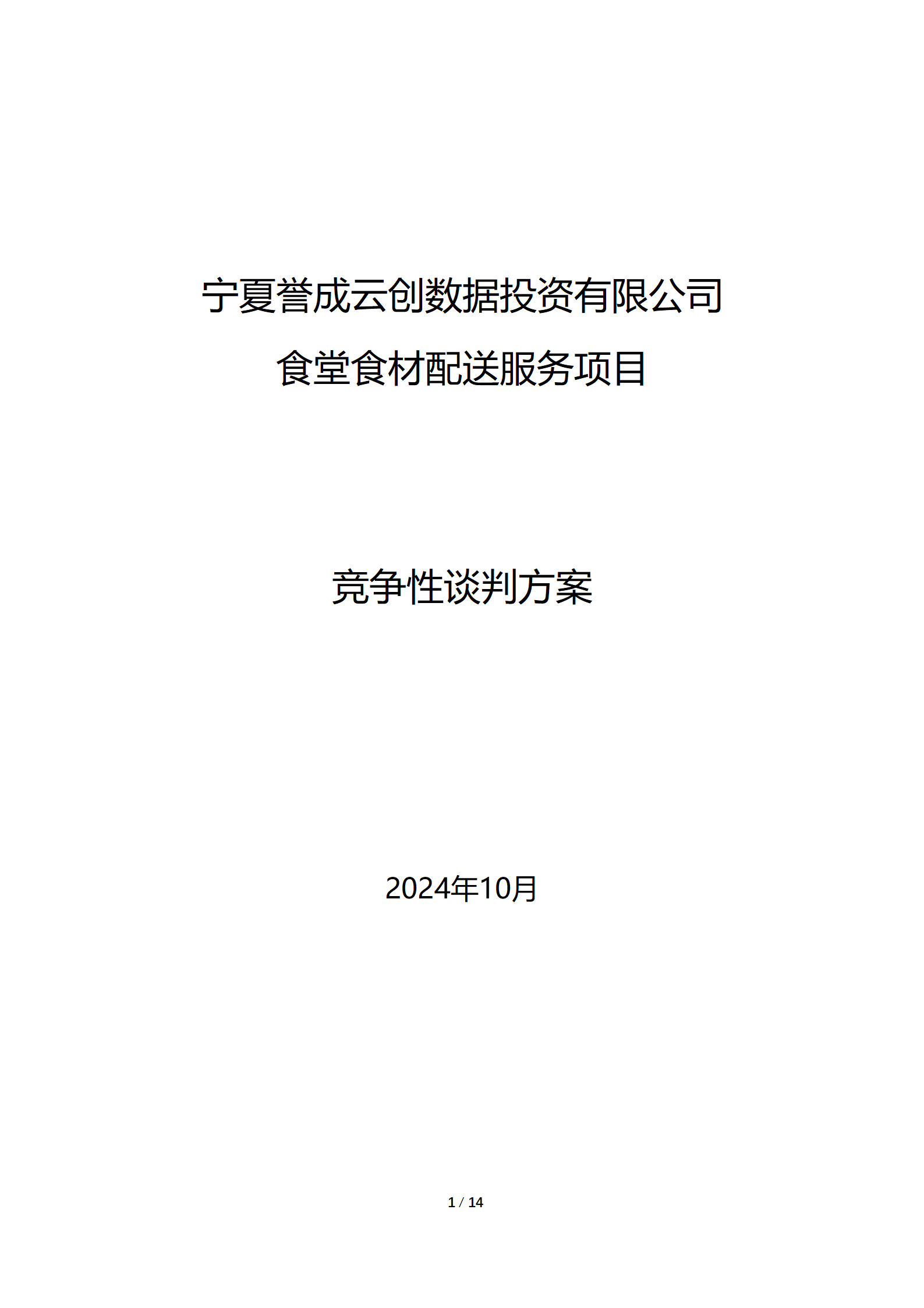 宁夏誉成云创数据投资有限公司现采购食堂食材配送服务,详细采购信息参见附件询价文件。